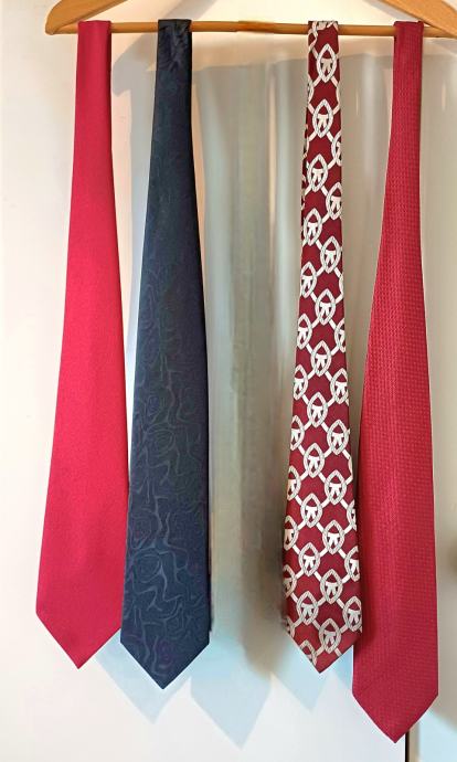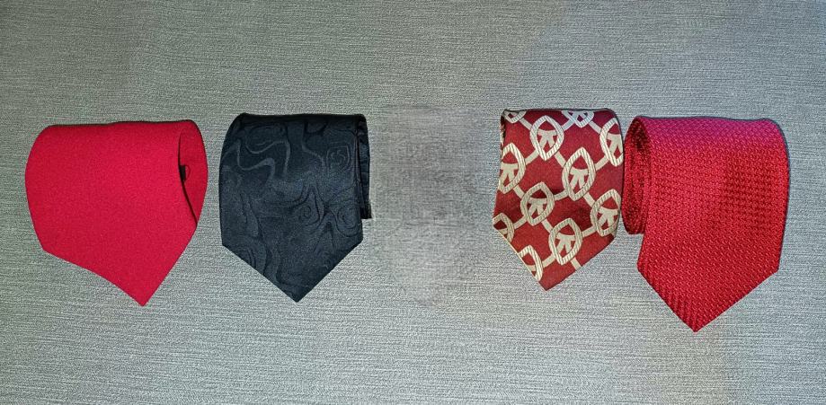 4 kravate sa fotografija, sve sa etiketama, cijena 5 eur komad, sve 4 zajedno 15 eur. Kupovina viđeno kupljeno. Dostupno dokle god na oglasu. Osobno preuzimanje Novi Zagreb ili strogi centar Zagreb; slanje Tiska paket/Box now po unaprijed primljenoj uplati za artikl i slanje. Za dodatne informacije molim nazvati. Ne mijenjam za drugo. Pogledajte i druge moje oglase. Hvala.