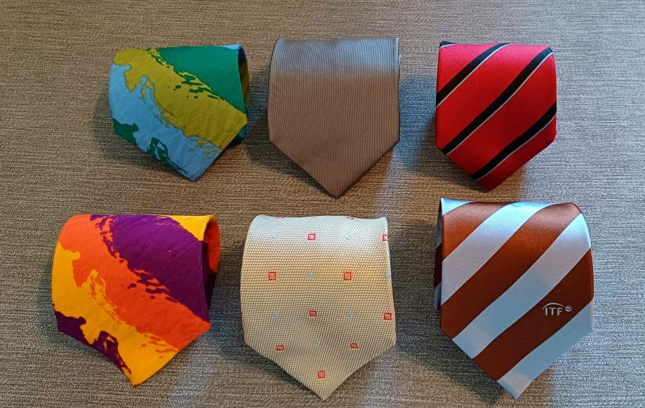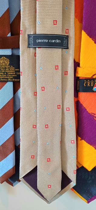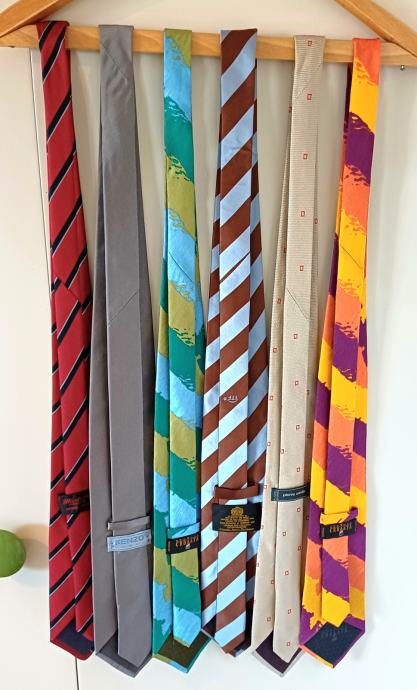 6 novih svilenih kravata sa fotografija (Croata, Kenzo, Pierre Cardin, Martelli), 5 eur po kravati. Kupovina po principu viđeno kupljeno. Osobno preuzimanje po dogovoru Novi Zagreb ili strogi centar Zagreba; slanje Tisak paket/Box now po unaprijed primljenoj uplati za artikl i slanje. Dostupno dokle god na oglasu. Za dodatne informacije molim isključivo nazvati. Ne mijenjam za drugo. Pogledajte i druge moje oglase. Hvala.
