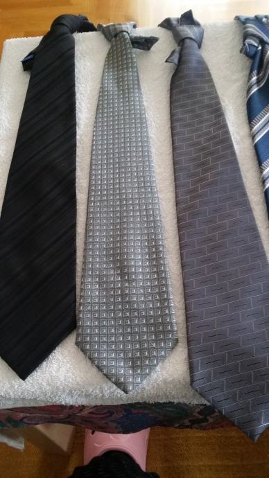 Kravate po 3 ×upotrijebite.Jako su bile skupe.Sad su sve 10 eu.Samo je jedna crna sa još crnjim kosim crtama.Ostale su 2 boje.Neke su svezane u čvor dok dr.nisu.Ako kupite sve onda su po 1 eu.