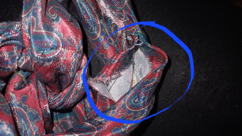 Na području oko vrata ima rašiveni dio 10-ak cm,ali se može zašiti.Vidljivo na slici (zaokruženo).