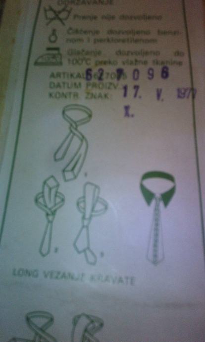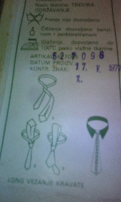 Nikad nošena. Original upakovana. Datum proizvodnje: 17.V.1977g. Kontrolni znak X.Artikal: 627096 Designe: Š. Dervarić. Starina.Zamjena .