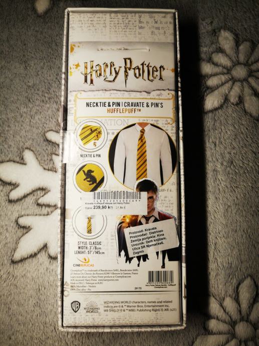 Prodajem potpuno novu Hufflepuff kravatu i značku iz Harry Potter kolekcije, još uvijek s etiketom. Kravata je izrađena od žute mikrofibre s prepoznatljivim Hufflepuff dizajnom. Savršen poklon za svakog obožavatelja Harry Pottera i Hufflepuff kuće.