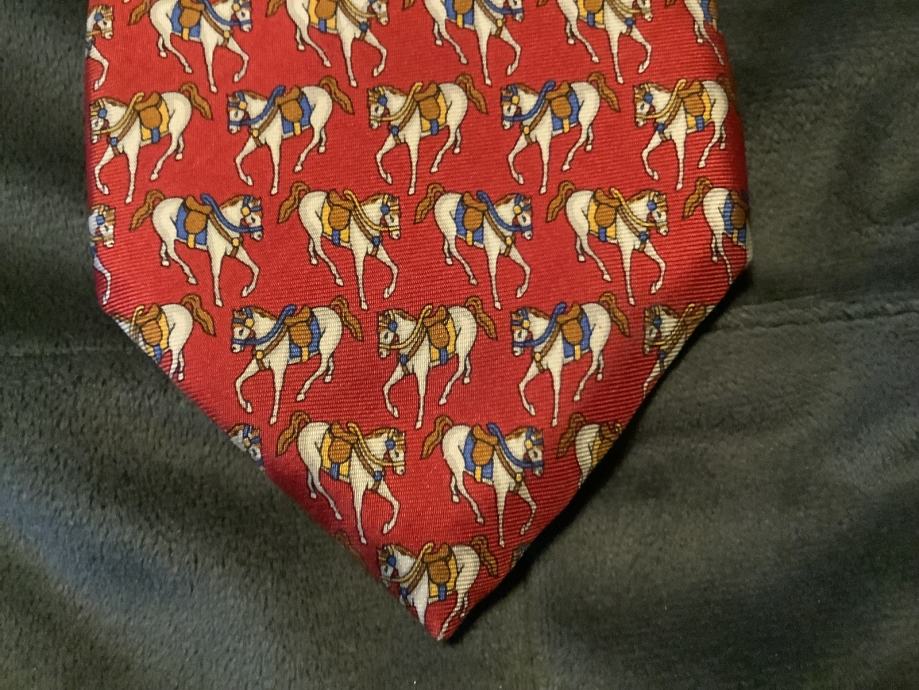 Prodajem kravatu 100% svila, crvenu sa konjima.