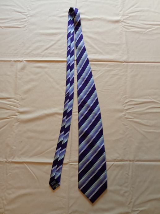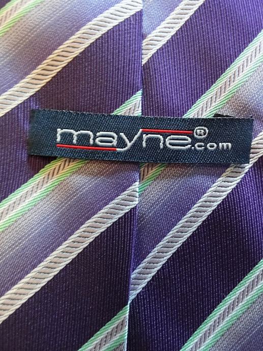 Prodajem elegantnu rabljenu kravatu brenda Mayne s prugastim uzorkom u ljubičastim i svijetlo plavim tonovima. Kravata je ručno izrađena i u dobrom je stanju unatoč korištenju. Savršena za poslovne prilike ili svečane događaje kada želite ostaviti dobar dojam.