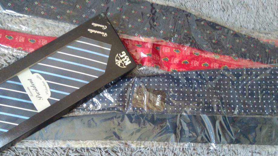 Kravate nove ,brendirane,svilene vise modela,(croata,boss, trussardi...)original u originalnom pakiranju.Cijene variraju od brenda do brenda. U KOMPLETU jedino.Imam 30 ak komada.Cijenu koju vidite je po komadu.