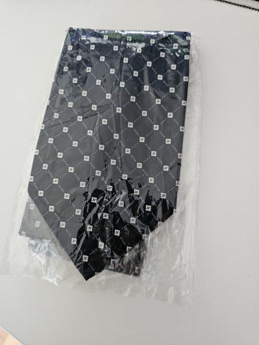 ORIGINALNA NIKAD OTPAKIRANA KRAVATA (Crna sa plavim i sivim uzorcima) 100% Svila