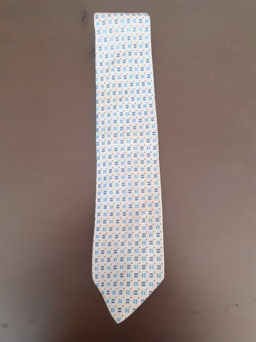 Svilena kravata Hugo Boss original, bijela reljefna s uzorkom u dvije nijanse plave boje
