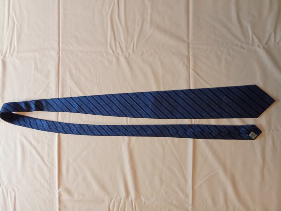 Elegantna svilena kravata Bellantare u plavoj boji s diskretnim prugastim uzorkom, malo korištena i u dobrom stanju. Savršen dodatak za poslovne i svečane prilike koji će upotpuniti vaš outfit.