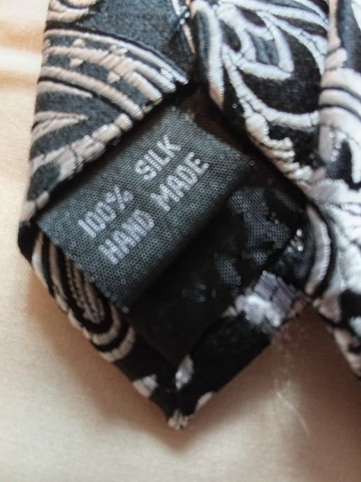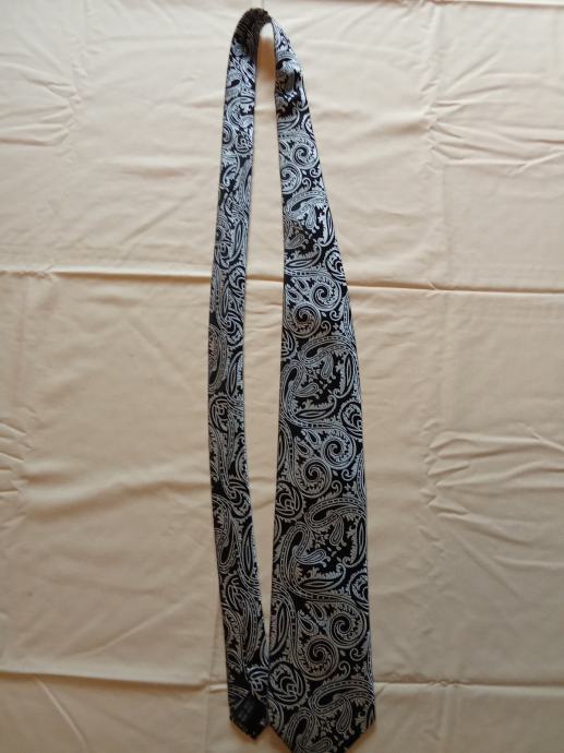 Elegantna svilena kravata s atraktivnim paisley uzorkom u crno-bijeloj kombinaciji. Kravata je rabljena ali u dobrom stanju, izrađena od 100% svile. Idealan modni dodatak za svaku svečanu priliku ili poslovno odijevanje.