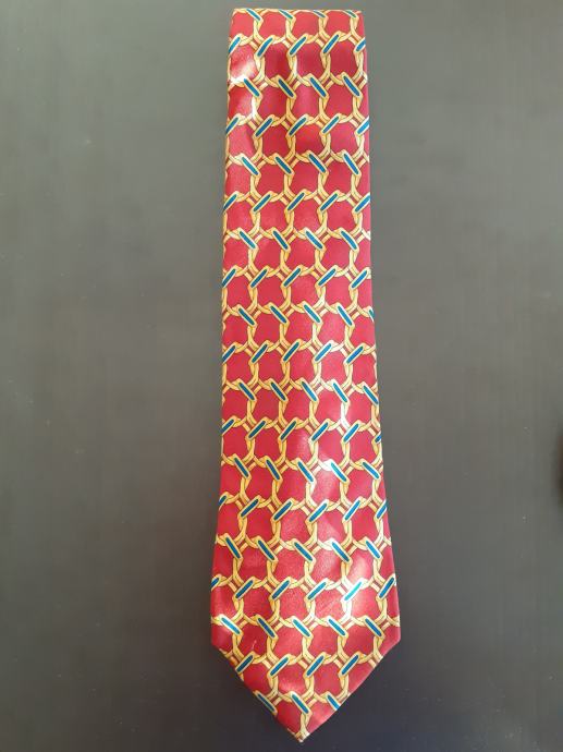 Talijanska svilena kravata Gherardini Firenze, crvena sa zlatno.plavim uzorkom, širina na najširem dijelu 10 cm