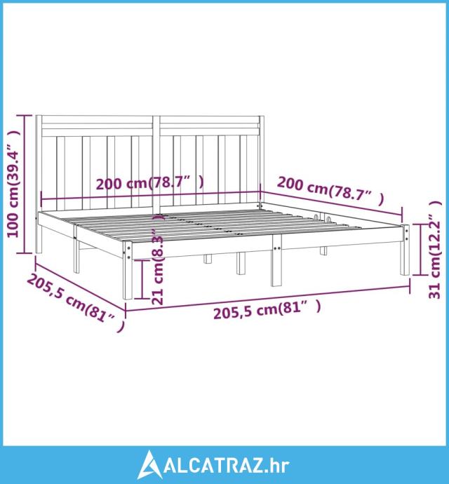 - Dimenzije okvira za krevet: 205,5 x 205,5 x 31 cm (D x Š x V)