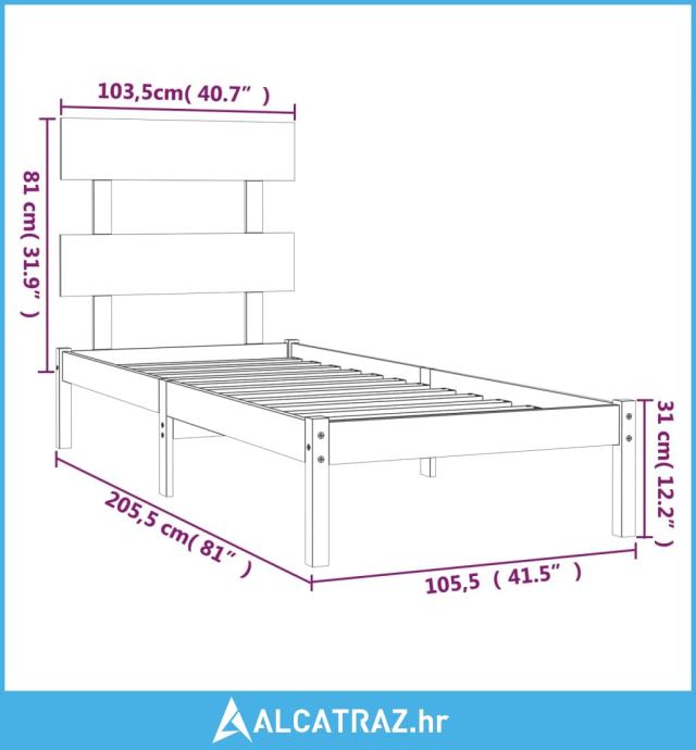 - Dimenzije okvira za krevet: 205,5 x 105,5 x 31 cm (D x Š x V)