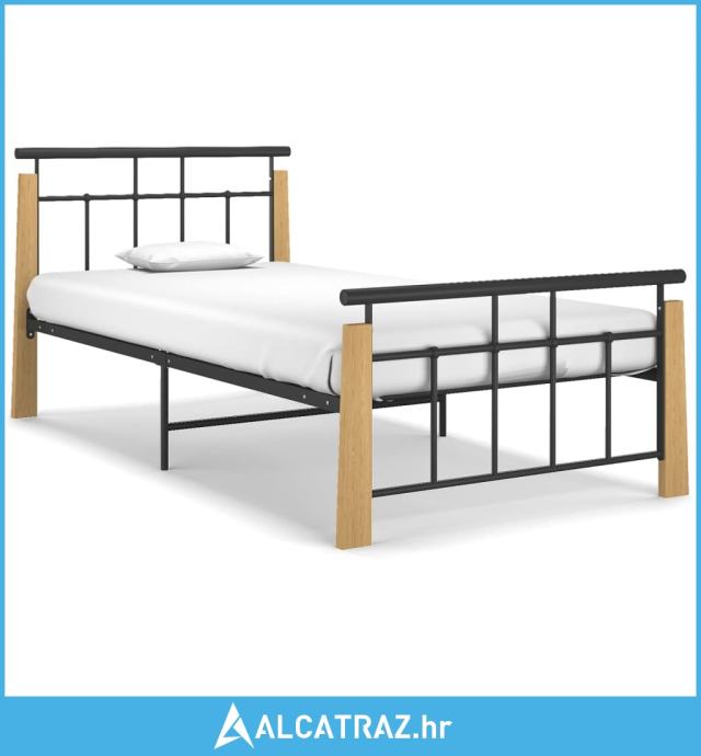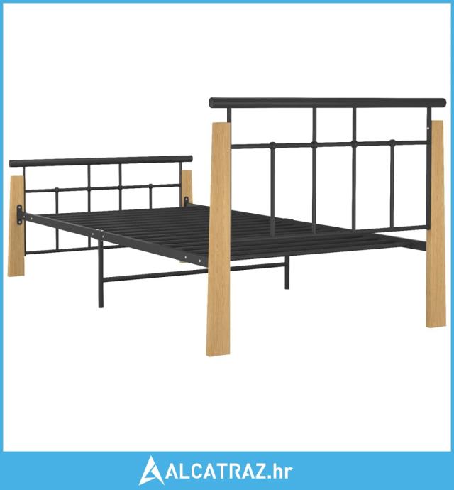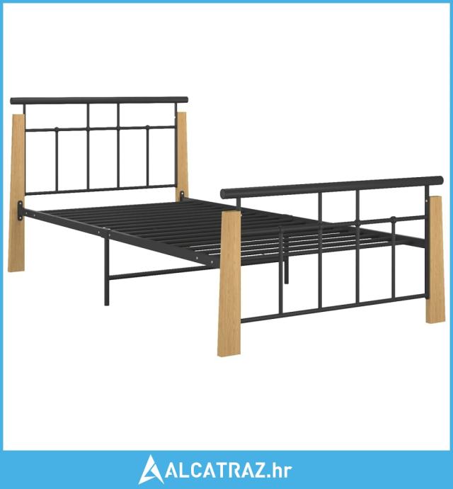 Okvir za krevet od metala i masivne hrastovine 100 x 200 cm - NOVO