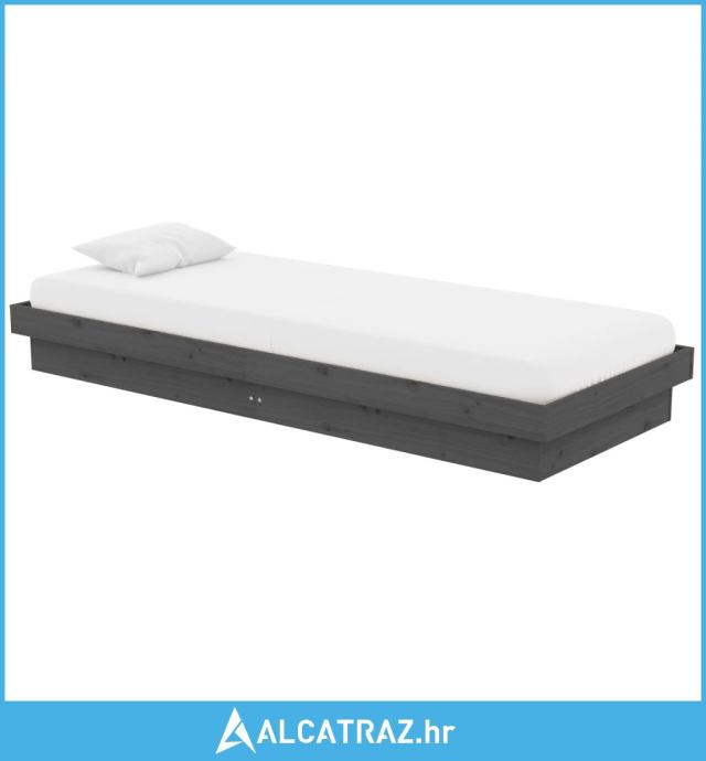 Okvir za krevet sivi masivno drvo 75x190 cm 2FT6 jednokrevetni - NOVO