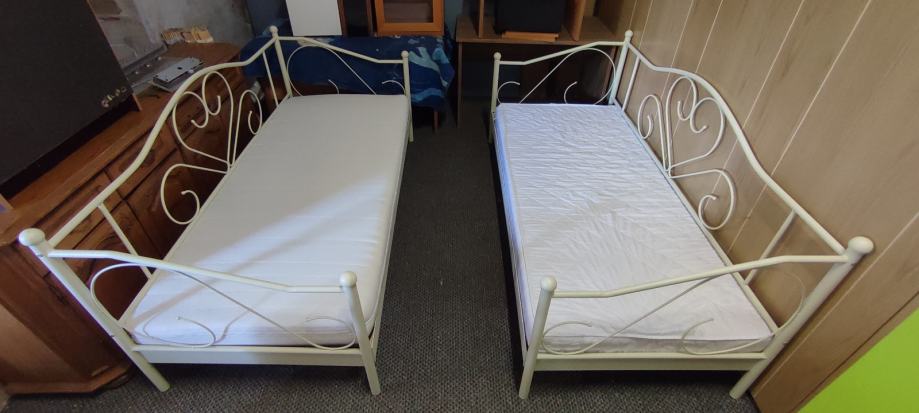 2 komada metalna kreveta sa podnicom i madracem 90×200