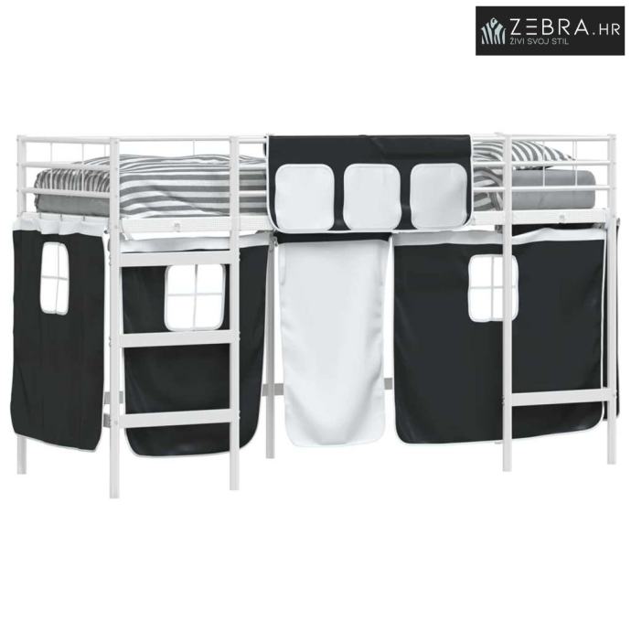 Ovaj krevet na kat za klince s zavjesama zamišljen je da unaprijedi svaku dječju sobu i pretvori ju u moderni, funkcionalni prostor. Podizanjem spavaćeg dijela vašeg mališana iznad tla, stvara se prostor za igru i kreativnost. Metalni okvir i jednostavan dizajn daju mu cool, ali prijateljski izgled, a zavjese donose privatnost i udobnost. Idealan za klince koji vole dremati i istraživati, ovaj krevet na kat donosi avanturu u svaku sobu, a istovremeno olakšava organizaciju prostora.