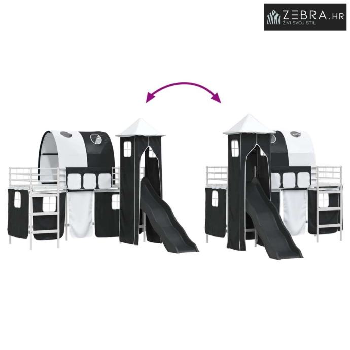 Ovaj moderni loft krevet s zavjesama, lukom, toboganom i tornjem nudi uzbudljivo i praktično rješenje za dječje sobe. Savršen je za pridobivanje pažnje i stvaranje zanimljiva okruženja. S njegovim kul tornjem i inovativnim toboganom, spavanje postaje stvarno zabavno iskustvo. Pametno dizajniran da maksimizira prostor, savršeno se uklapa u dinamičan stil života današnjih mališana. Kombinacija lijepog dizajna i praktičnih funkcija čini ovaj namještaj idealnim za dječje prostorije punih kreativnih mogućnosti.