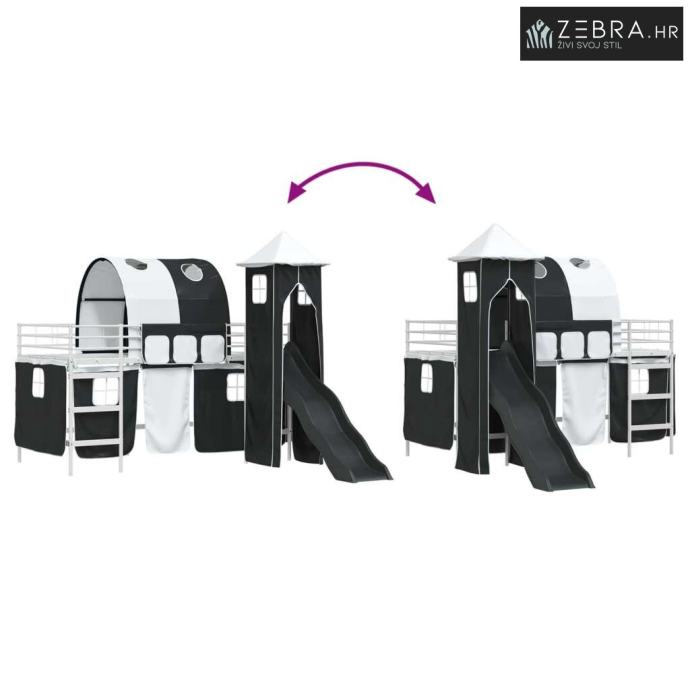 Ovaj moderni loft krevet s zavjesama, lukom, toboganom i tornjem nudi uzbudljivo i praktično rješenje za dječje sobe. Savršen je za pridobivanje pažnje i stvaranje zanimljiva okruženja. S njegovim kul tornjem i inovativnim toboganom, spavanje postaje stvarno zabavno iskustvo. Pametno dizajniran da maksimizira prostor, savršeno se uklapa u dinamičan stil života današnjih mališana. Kombinacija lijepog dizajna i praktičnih funkcija čini ovaj namještaj idealnim za dječje prostorije punih kreativnih mogućnosti.