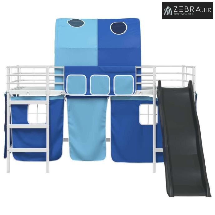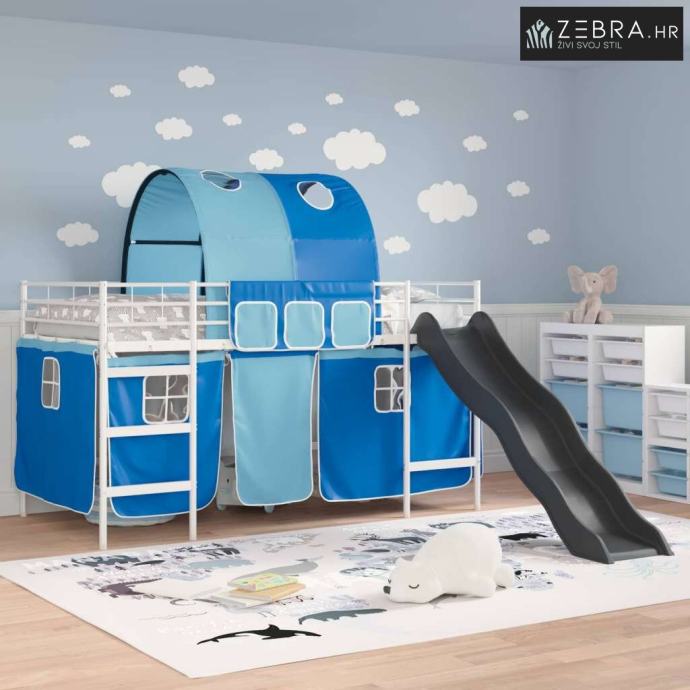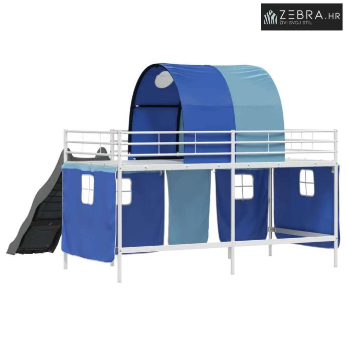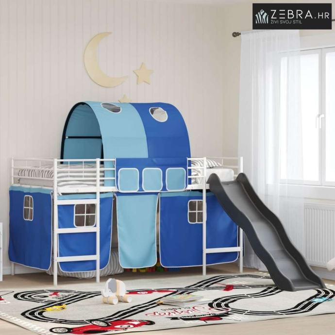 Značajke prilagođene djeci: Krevet uključuje tobogan koji potiče maštu i zabavu. Metalno uzglavlje montirano na zid povećava funkcionalnost i daje moderan izgled.