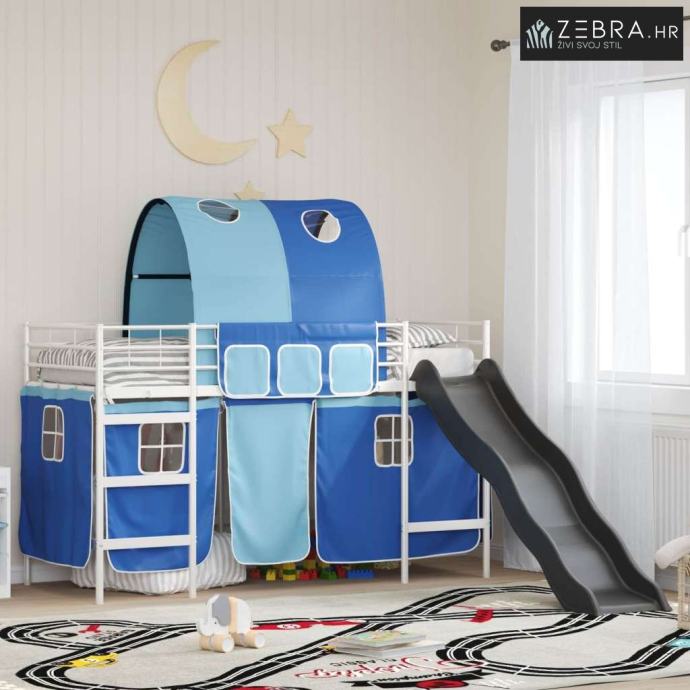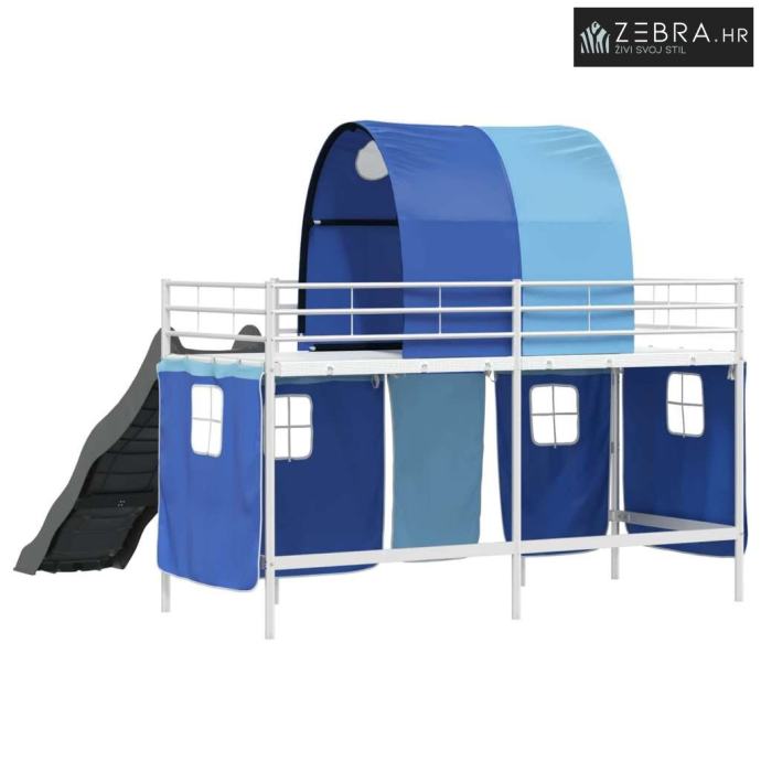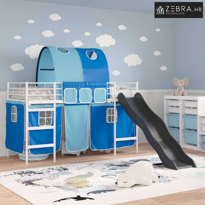 Značajke prilagođene djeci: Krevet uključuje tobogan koji potiče maštu i zabavu. Metalno uzglavlje montirano na zid povećava funkcionalnost i daje moderan izgled.