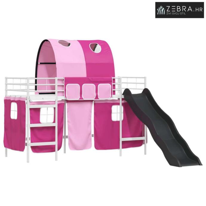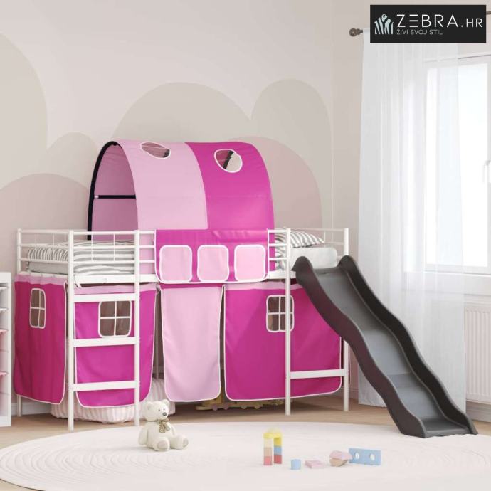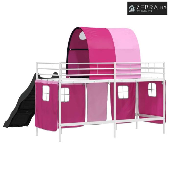 Značajke prilagođene djeci: Krevet uključuje tobogan koji potiče maštu i zabavu. Metalno uzglavlje montirano na zid povećava funkcionalnost i daje moderan izgled.