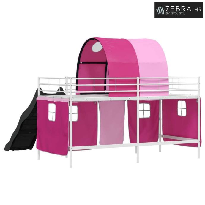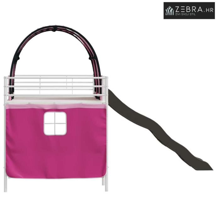 Značajke prilagođene djeci: Krevet uključuje tobogan koji potiče maštu i zabavu. Metalno uzglavlje montirano na zid povećava funkcionalnost i daje moderan izgled.