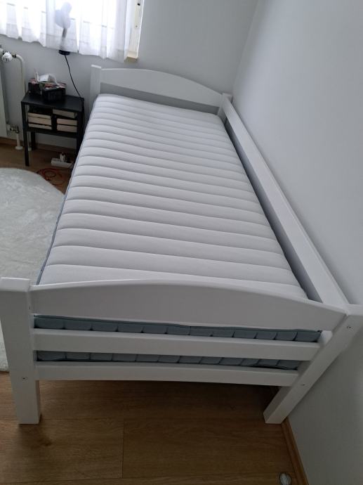 Kao nov, bijeli krevet od punog drva s podnicom. Moguće kupiti 2 takva kreveta i madrac. Cijena za jedan krevet i podnicu
