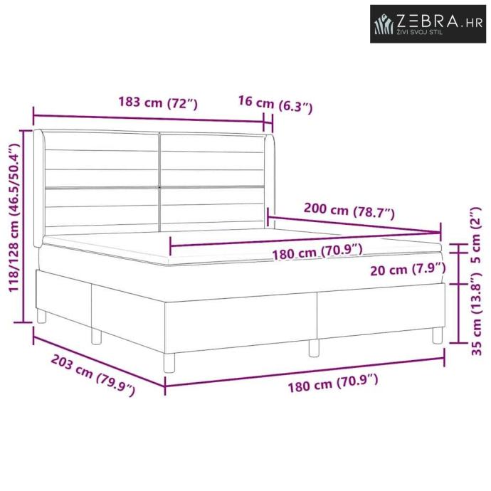 Veličina madraca: Super king (180 cm x 200 cm / 71" x 79")
