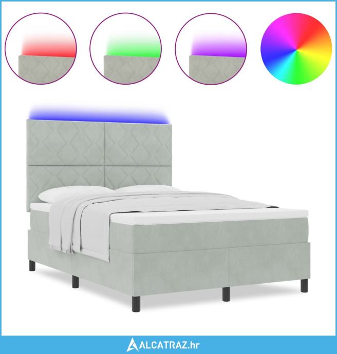 Box Spring Krevet s Madracem i LED Svjetlom Svjetlosiva 140x190 cm Bar