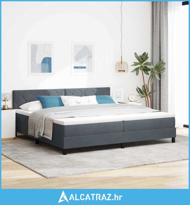 Box Spring Krevet s Madracem & LED Tamnosivi 200x200 cm Baršun - NOVO