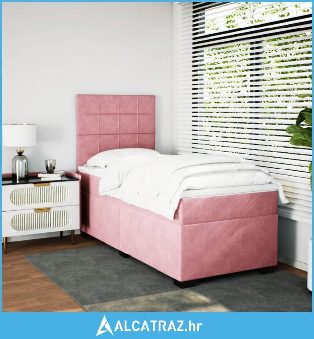 Box spring krevet s madracem ružičasti 90x200 cm baršunasti - NOVO