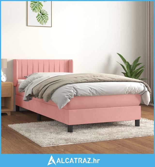 Box spring krevet s madracem ružičasti 90x200 cm baršunasti - NOVO