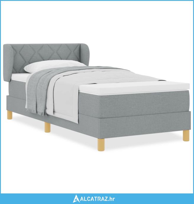 Box Spring Krevet s Madracem - Svjetlosiva, 90x200 cm, Tkanina - NOVO