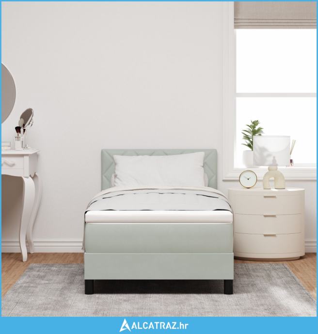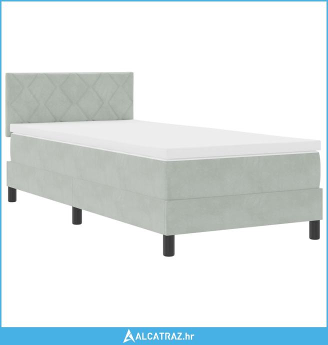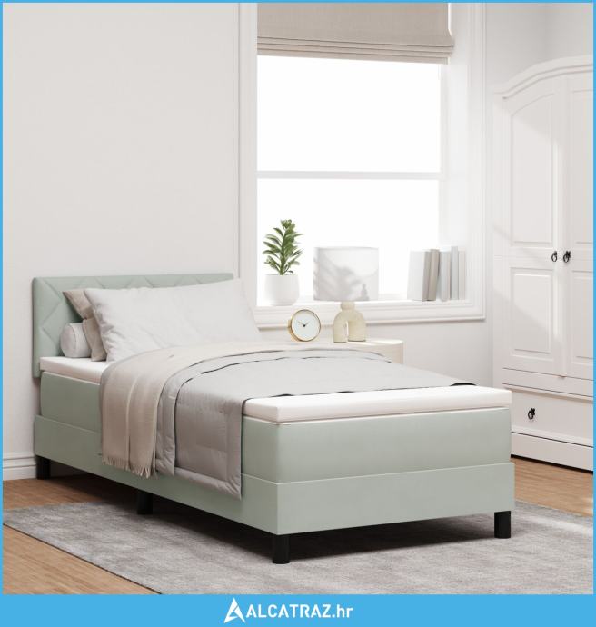 Box Spring Krevet s Madracem Svjetlosiva Jednokrevetna Baršun - NOVO
