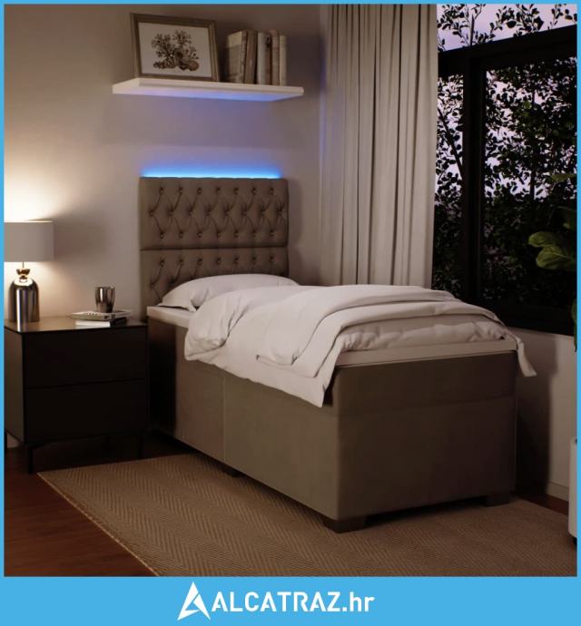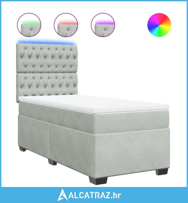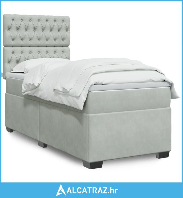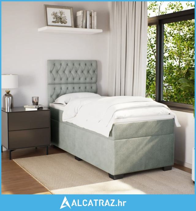 Box spring krevet s madracem svjetlosivi 100x200 cm baršunasti - NOVO