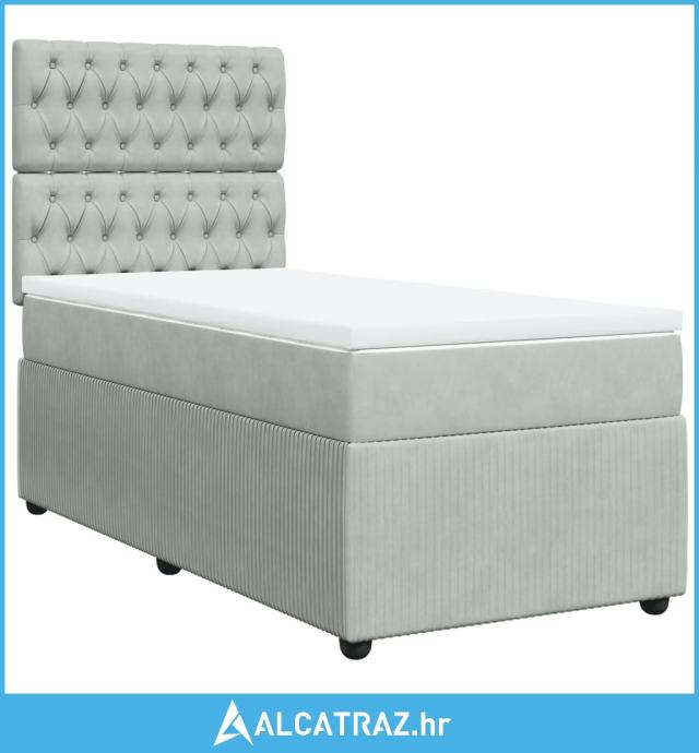 Box spring krevet s madracem svjetlosivi 100x200 cm baršunasti - NOVO
