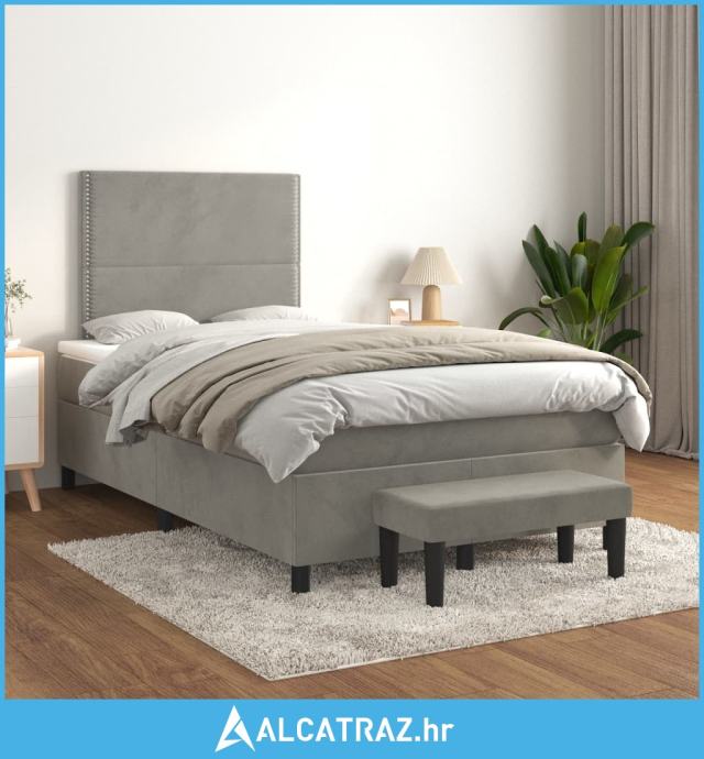 Box spring krevet s madracem svjetlosivi 120x200 cm baršunasti - NOVO