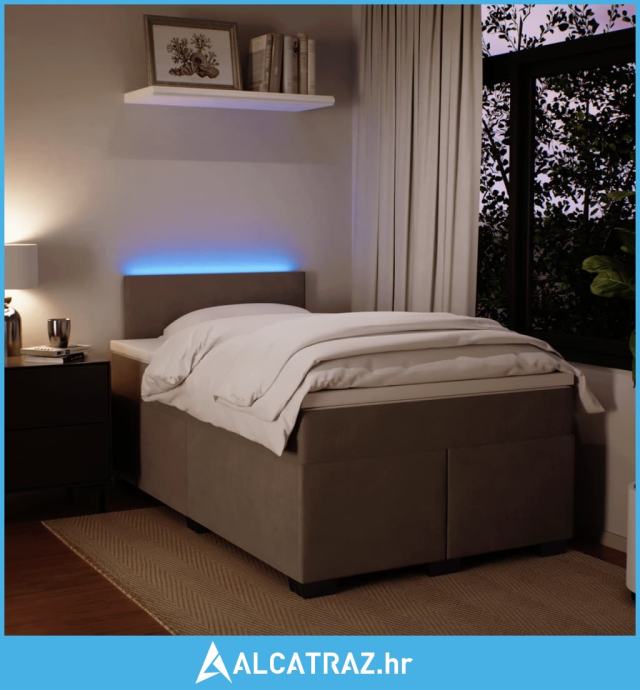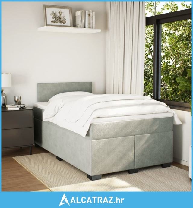 Box spring krevet s madracem svjetlosivi 120x200 cm baršunasti - NOVO