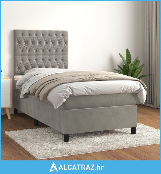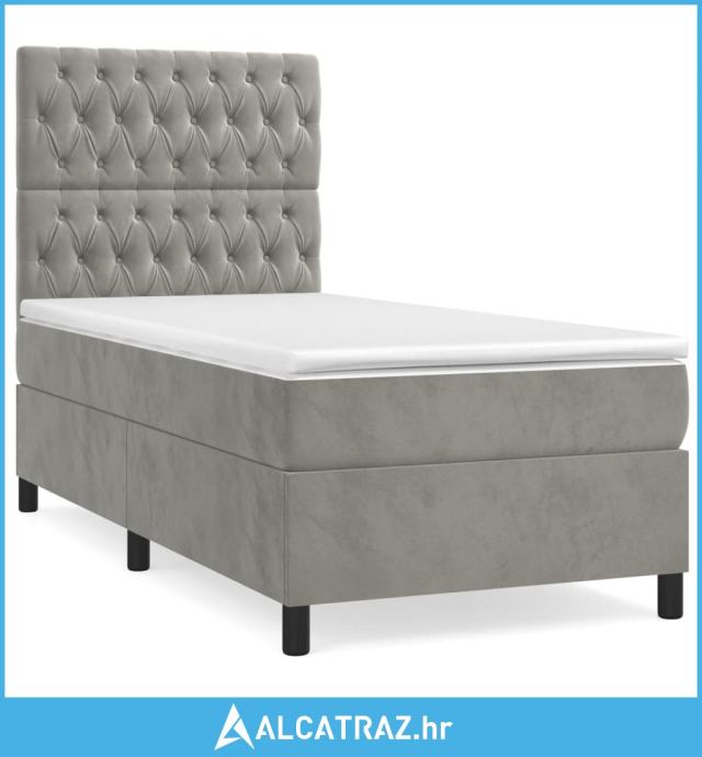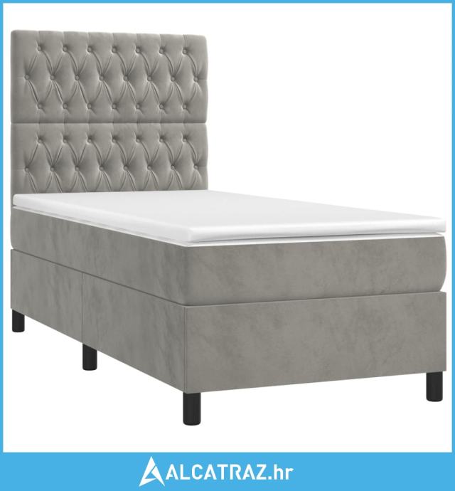 Box spring krevet s madracem svjetlosivi 80 x 200 cm baršunasti - NOVO