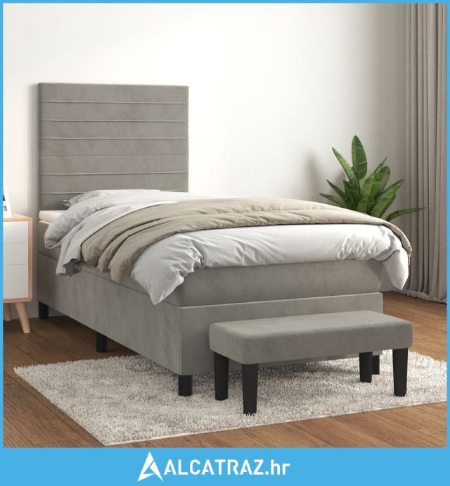 Box spring krevet s madracem svjetlosivi 80 x 200 cm baršunasti - NOVO