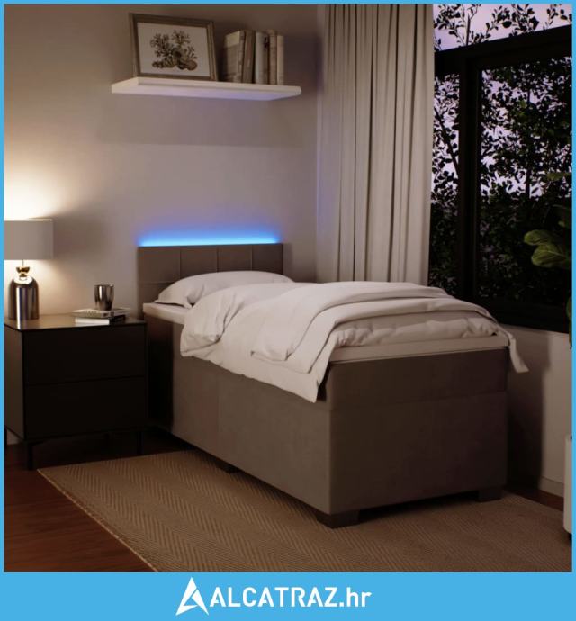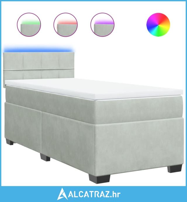 Box spring krevet s madracem svjetlosivi 80 x 200 cm baršunasti - NOVO