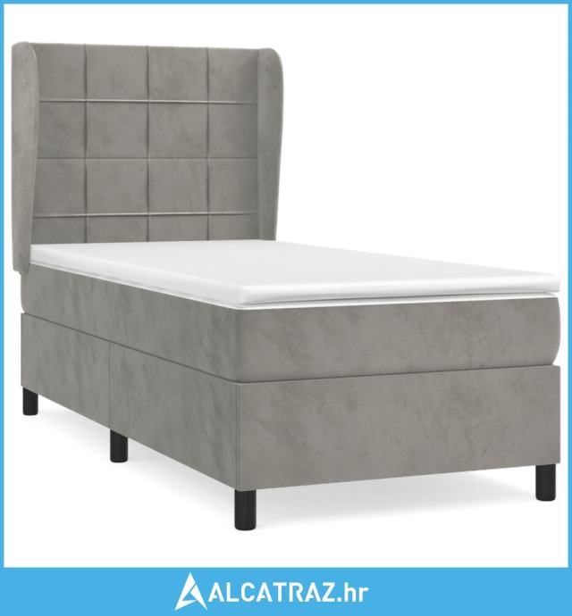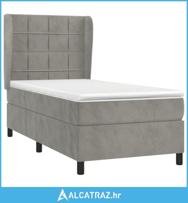 Box spring krevet s madracem svjetlosivi 80 x 200 cm baršunasti - NOVO