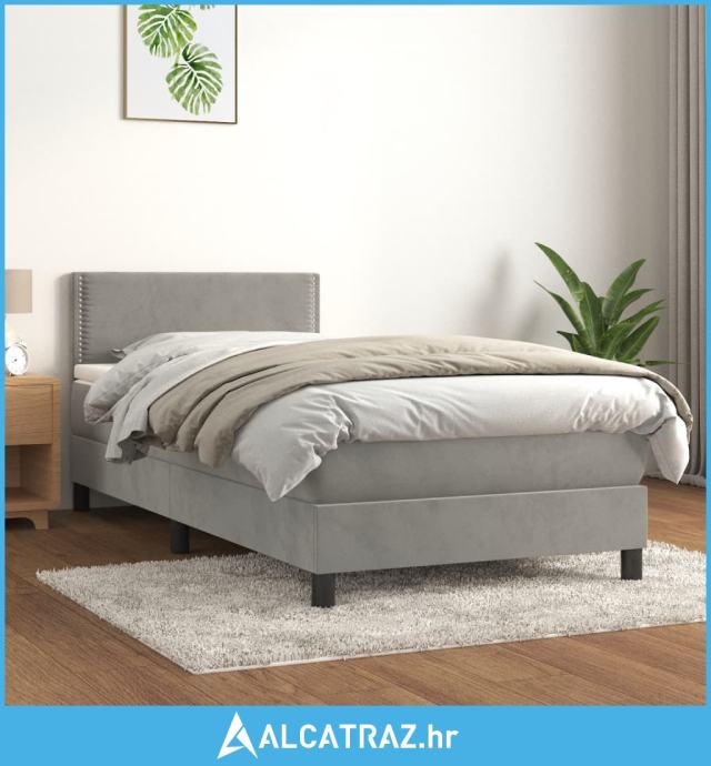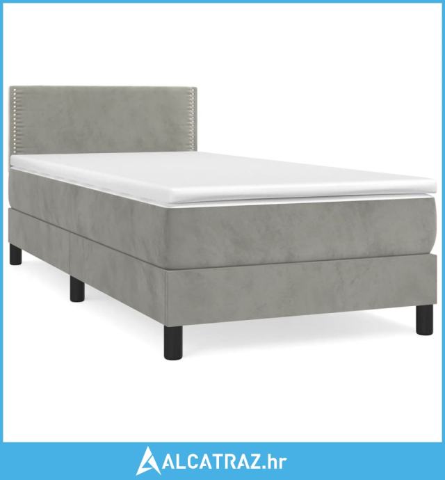 Box spring krevet s madracem svjetlosivi 90x190 cm baršunasti - NOVO