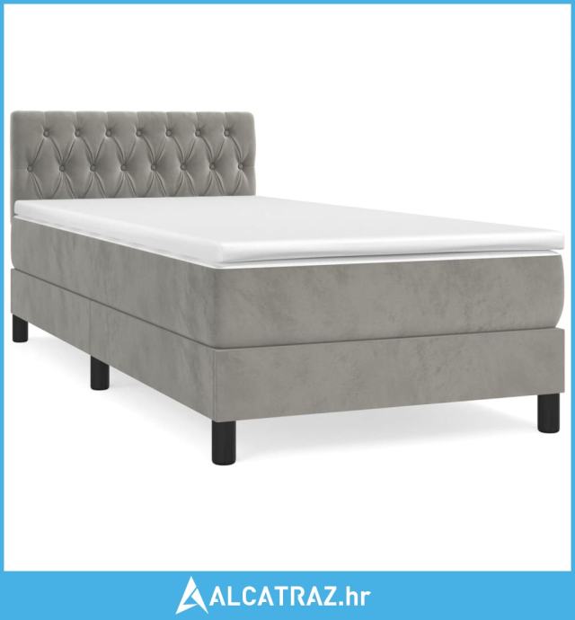 Box spring krevet s madracem svjetlosivi 90x190 cm baršunasti - NOVO