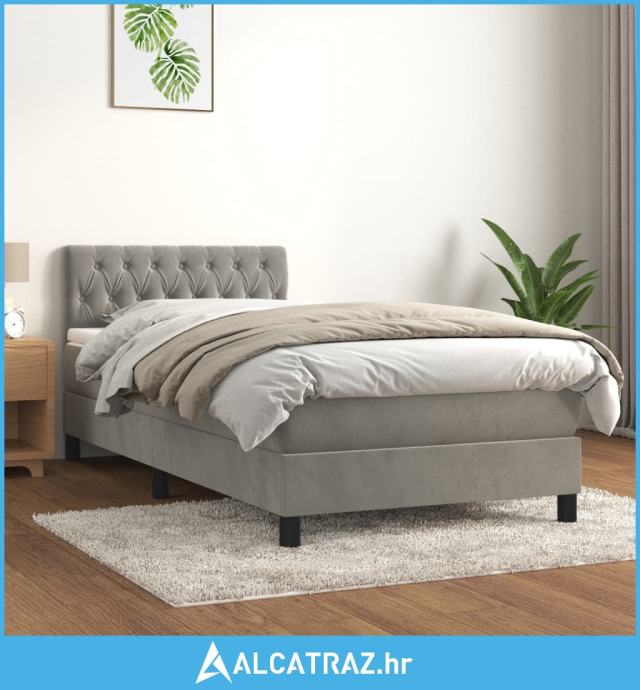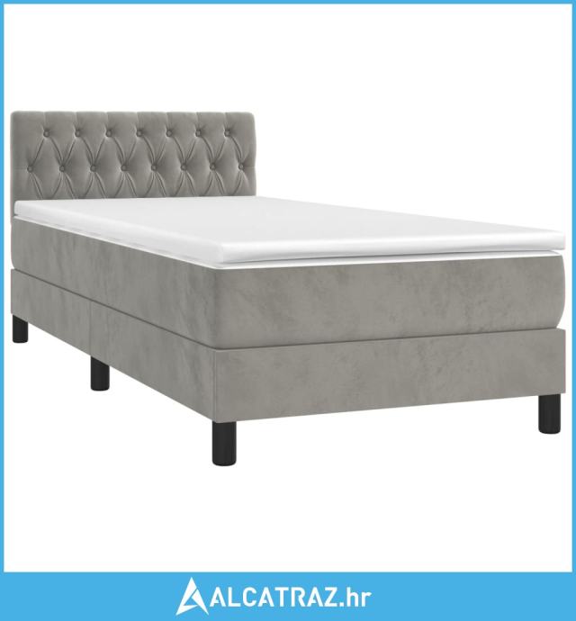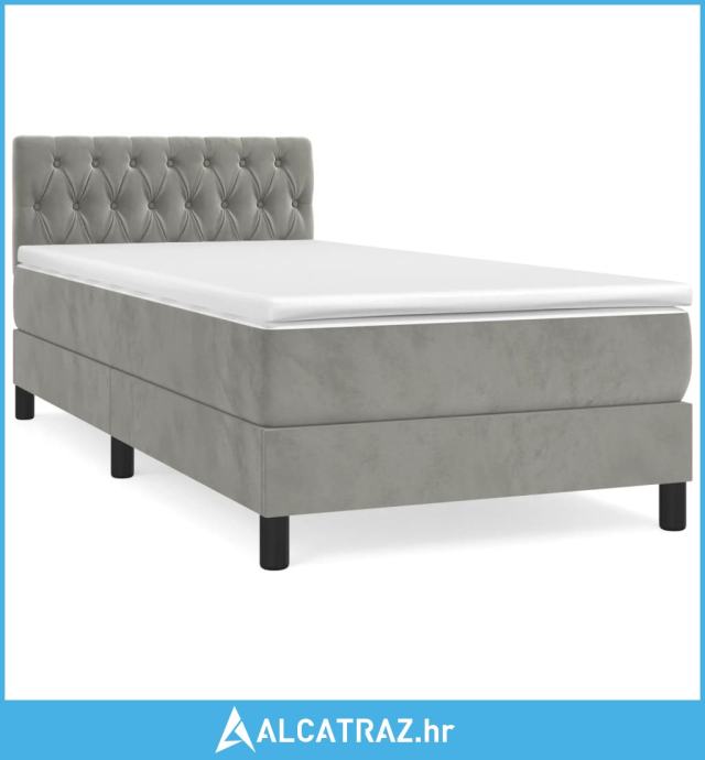 Box spring krevet s madracem svjetlosivi 90x190 cm baršunasti - NOVO