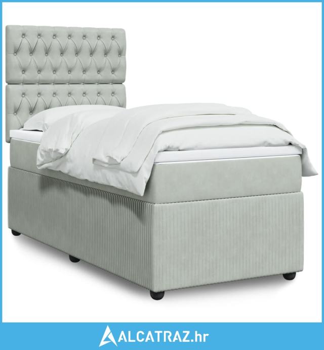 Box spring krevet s madracem svjetlosivi 90x190 cm baršunasti - NOVO
