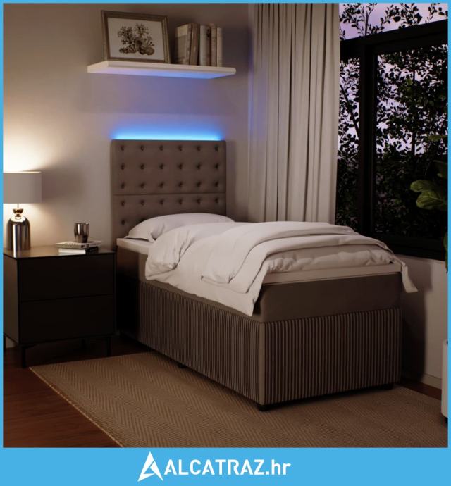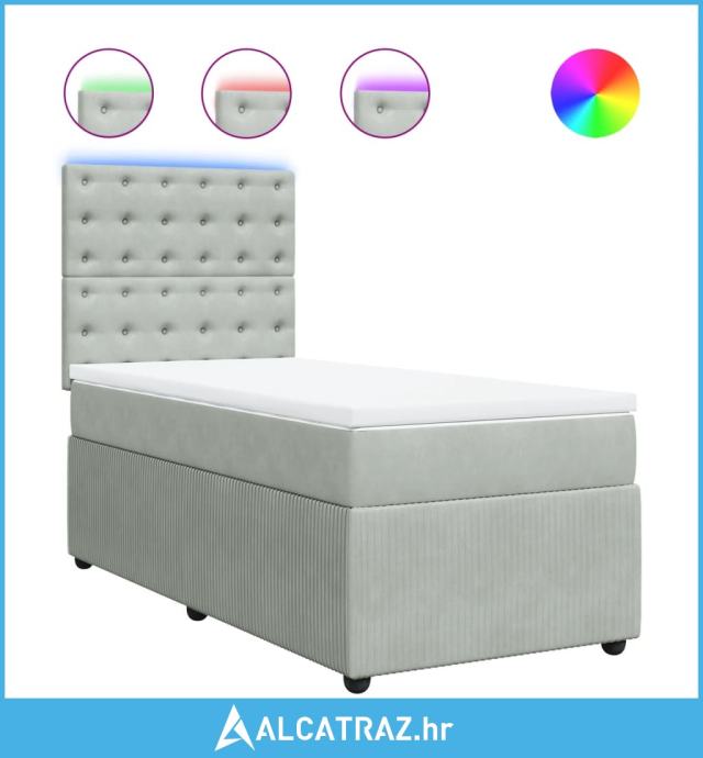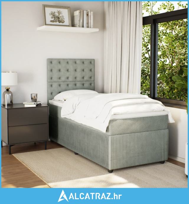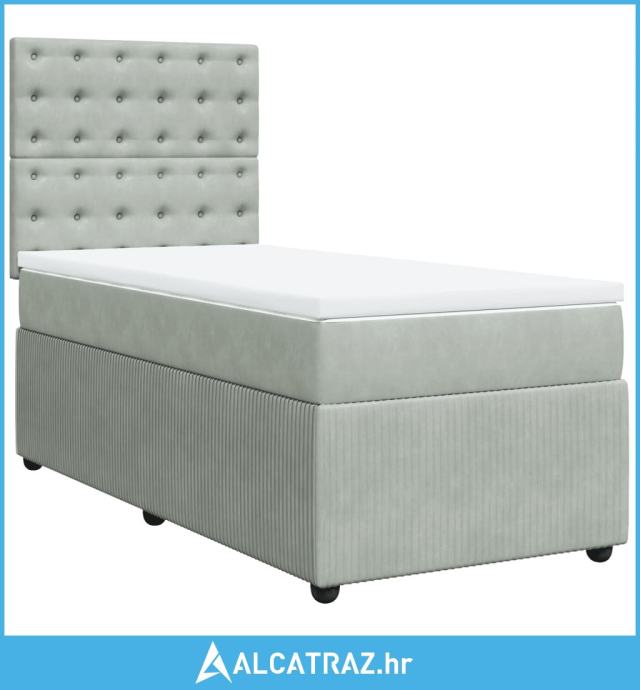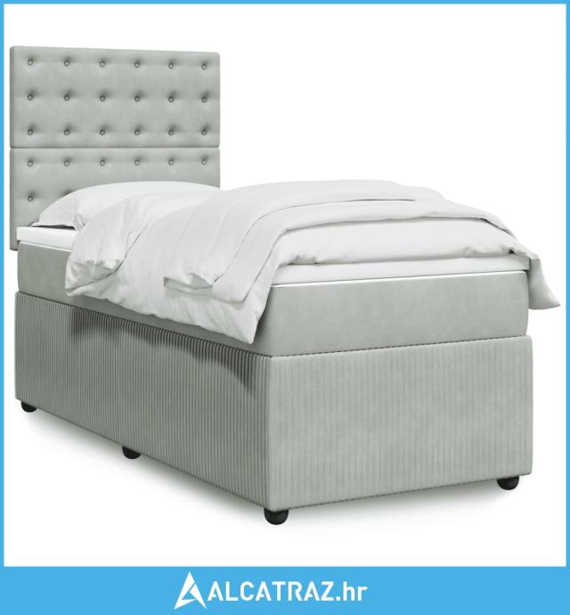 Box spring krevet s madracem svjetlosivi 90x190 cm baršunasti - NOVO
