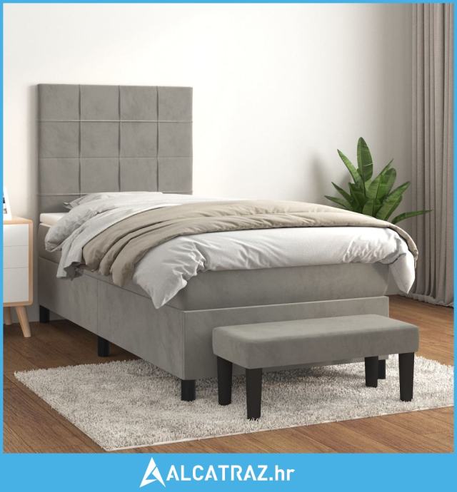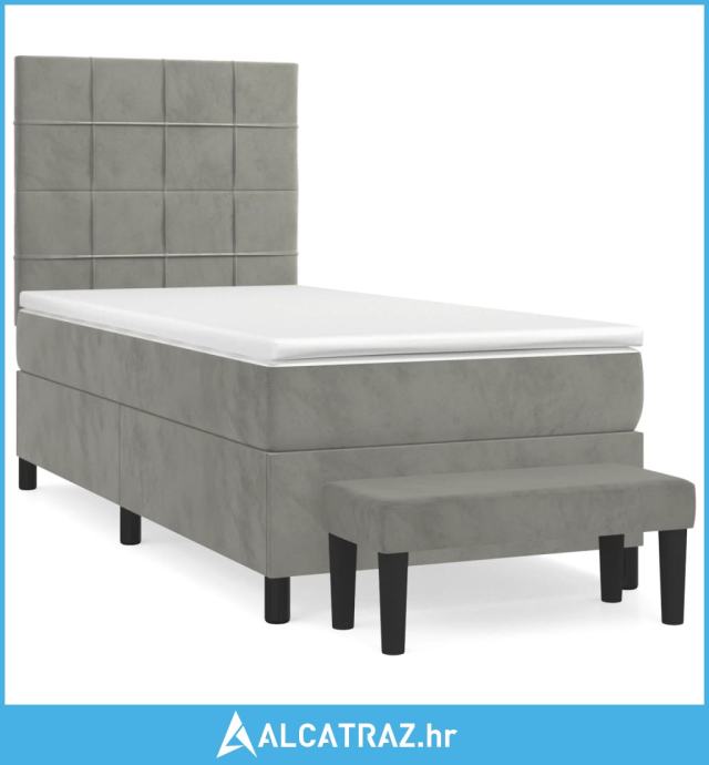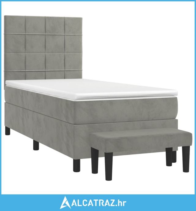 Box spring krevet s madracem svjetlosivi 90x190 cm baršunasti - NOVO