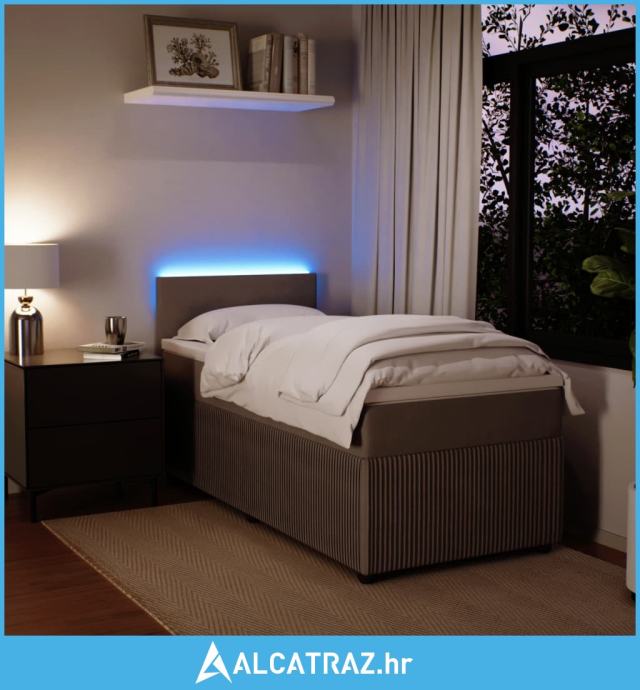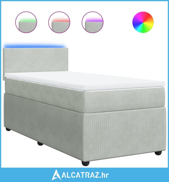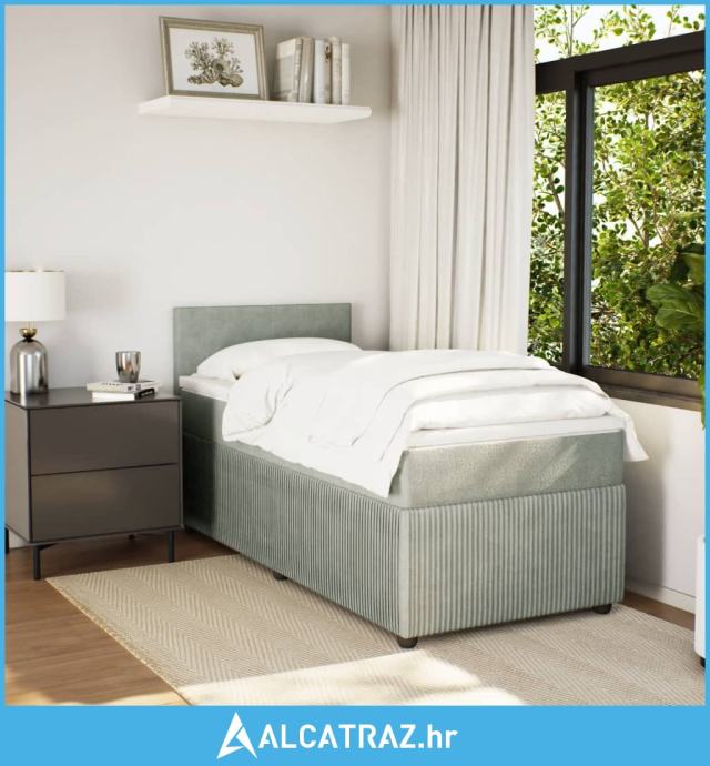 Box spring krevet s madracem svjetlosivi 90x190 cm baršunasti - NOVO