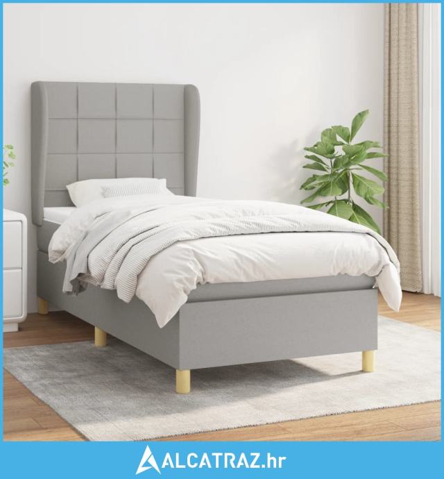 Box spring krevet s madracem svjetlosivi 90x190 cm od tkanine - NOVO